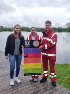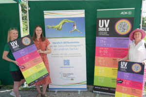 Die von der AOK übergebenen UV-Tafeln zeigen anschaulich, wie hoch der UV-Index (Zahlen von 1 – 11) ist und beschreiben, wie man sich jeweils verhalten sollte. Der abgedruckte QR-Code wird mit dem Handy gescannt und schon erhält man den aktuellen UV-Index des Standorts der UV-Tafel. Gerade in Freibädern, Seen und Spielplätzen macht eine eine UV-Tafel Sinn und soll den Besucherinnen und Besuchern die Thematik der UV-Strahlung näherbringen. Tipps zur richtigen Verhaltensweise helfen, um ein Sonnenbaden ohne gesundheitliche Hautschäden zu genießen.